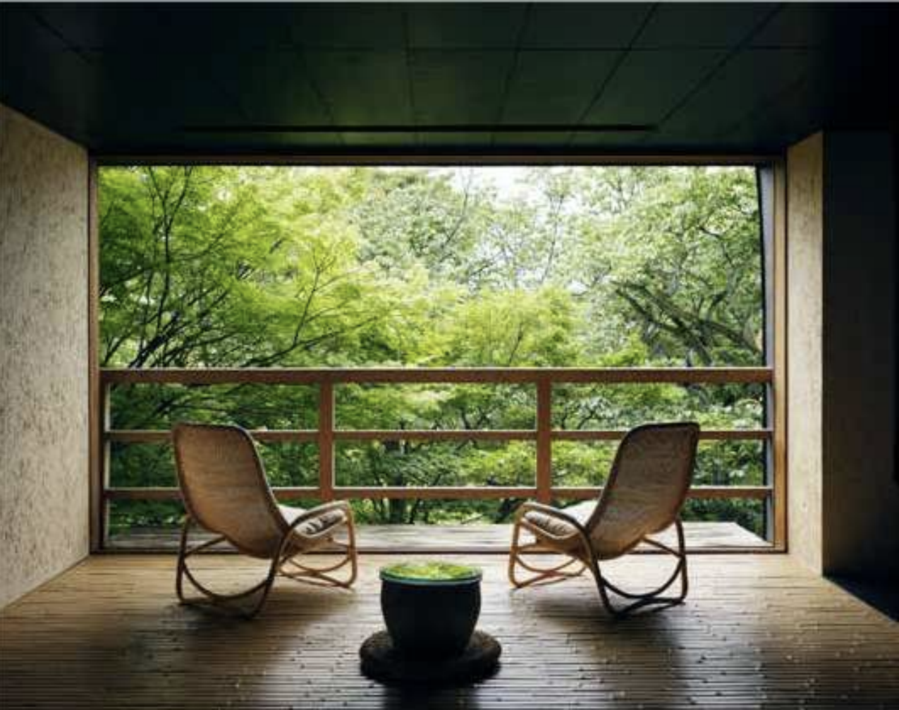 furnishings provide connecting and grounding to nature. Each room is designed with both Japanese and Western elements, in addition to an ensuite onsen with push-out windows to enjoy the surrounding forest. Fufu Hakone features an on-site spa, Spa Hinoka on the first floor of the Keyaki building. A special spa treatment at Hinoka includes a unique wood powder bath to experience the healing properties of fermented Japanese cypress powder on the body.