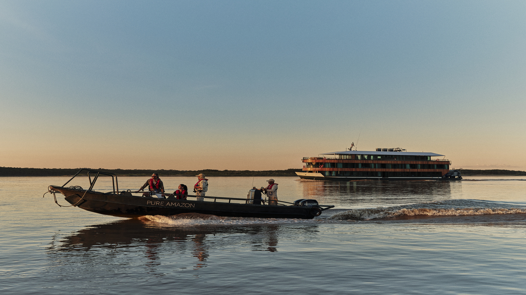 This is one of the newly built luxury Amazon River vessels, launched on June 28, 2025 as part of the same Sanctuary Group that operates all Egypt Nile River vessels that we use! With only 10 suites and two cabins, and a maximum of 22 passengers, The luxury Pure Amazon offers a more high-touch personal Amazon River experience than any other Amazon riverboat currently in service. On the Pure Amazon, you’ll find indoor and outdoor cocktail lounges, a dining room and private chef preparing locally sourced Amazonian cuisine, a fitness center, and a wellness room/spa offering traditional healing practices. Though the ship itself has state-of-the-art interiors, amenities, and facilities, the true value/excitement of this experience is in the unparalleled surrounding flora and fauna. Because you span the Pacaya-Samiria National Reserve to explore such remote, untouched areas, wildlife encounters are tremendous—think anacondas sliding in and out of the water and monkeys jumping through the riverside trees! Daily guided excursions include rainforest walks, kayaking through tributaries, piranha fishing, and local community visits.